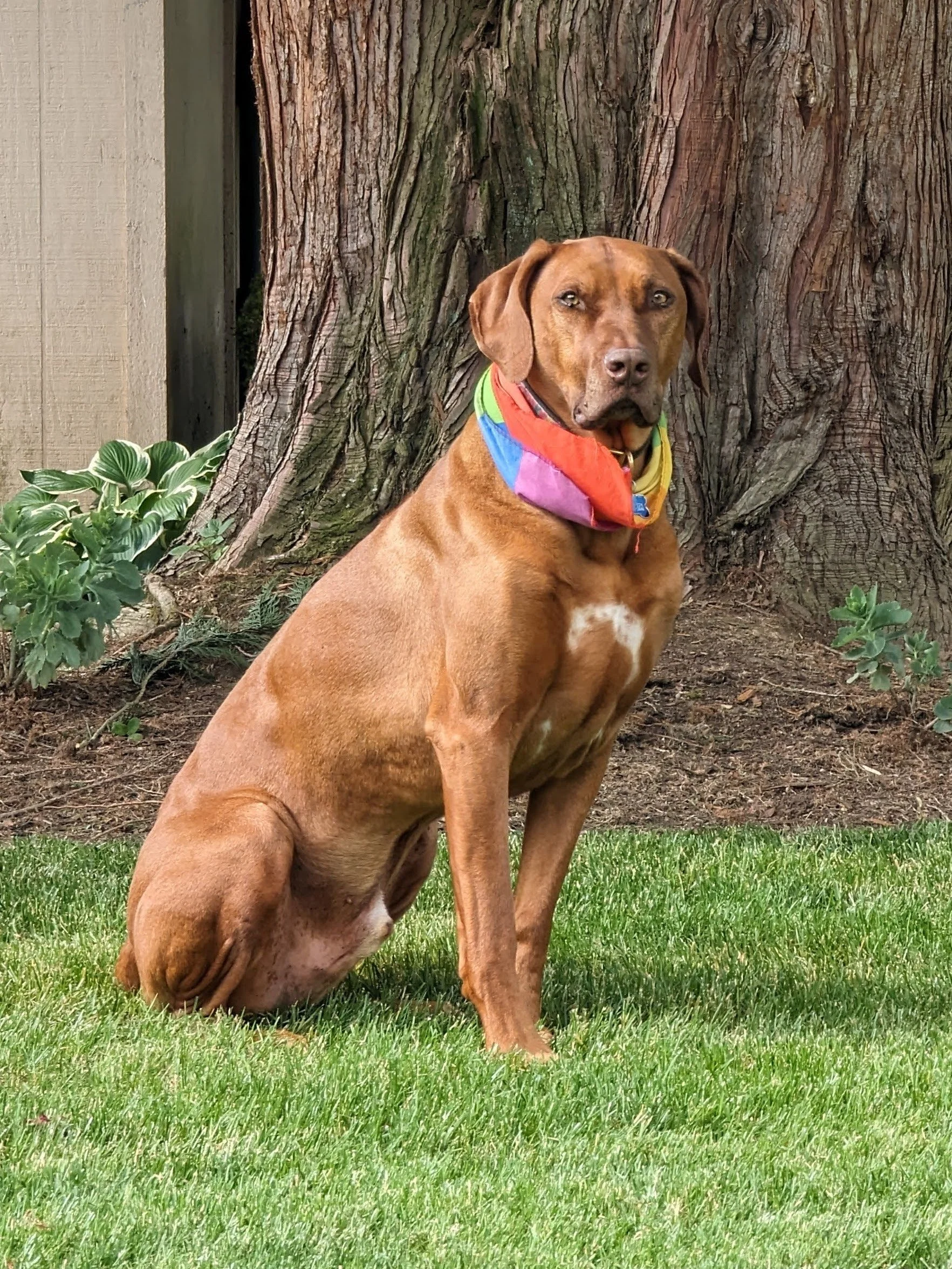 He had a serious side, but was very silly. He was one of the dogs until the end. Henny Hen joined his brothers in July 2025.